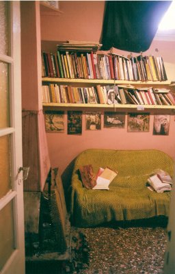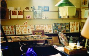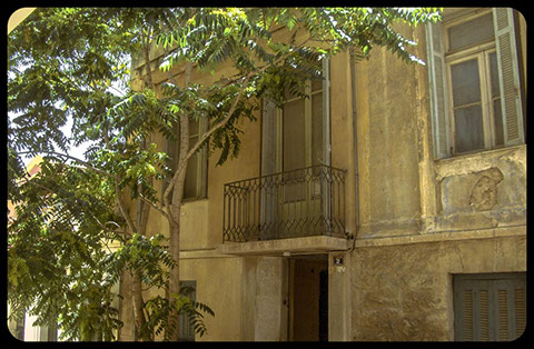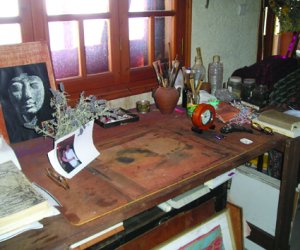 De fait, Péris a toujours vécu dans son atelier, y compris dans les minuscules chambres de bonnes à Paris (Rue du Bac, Boulevard Raspail, Rue Saint-Jacques, etc.). Il n’hésite pas à construire un lit superposé qui lui permet de dégager de la place pour une table de travail. Péris construit toujours lui-même ses meubles; il est fier d’être capable de créer une mezzanine sans un clou ! Il fabrique son lit où il dort toujours « à la dure » et ses tables de travail comprennent des étagères et des roulettes. Son dernier atelier est situé à Vlachydès (île d'Egine), dans la petite maison où il s’installe la dernière année et se compose d’une table convertible en lit sur le balcon, face à la mer. Mais auparavant, il reste 25 ans dans son atelier au n°9 de la Rue Mavrovounioti, dans le quartier de Koukaki, près de l’Acropole, sur les flancs de la colline Philopappou (pour lui, « le quartier des aristocrates » car bien que situé près du centre d'Athènes, il demeure calme et on n'y subit pas trop les nuisances sonores de la circulation automobile). Nikos Panayiotopoulos, écrivain poète, est un ami de Péris et son voisin. Pendant de nombreuses années, il fait régulièrement halte dans l'atelier où il assiste à l'évolution du travail de Péris. Il nous décrit ainsi cet atelier :