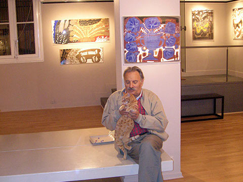 Exposition, env 1989, Athènes. A droite, son ami Yannis Tsadoulas, architecte.