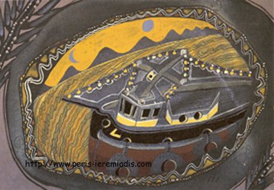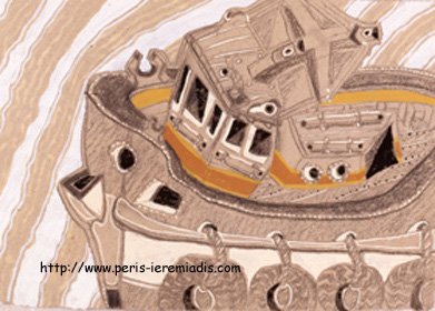 Die Barken stellen ein Thema dar, welches sich im Werk des Malers wiederfindet: einige Reproduktionen von alten Gemälden mit Segelschiffmotiven um 1970 herum, Dutzende von Studien ab 1980, die seine genauen Beobachtungen in den Häfen von Marmari (Euböa) und Ägina belegen, vorbereitende Skizzen mit Rötelstift, mitunter mit Details, die mit Hilfe von Tinte oder Pigmenten hervorgehoben sind. 1995 veranstaltet Peris eine Ausstellung über die Barken in der alten Dependance in Piräus des Institut Français von Athen. Die Ausstellung wurde vom damaligen Direktor Marcel Durand präsentiert :