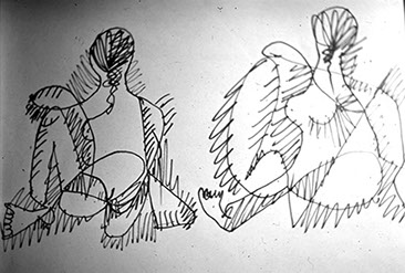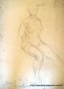 De l’époque des Beaux Arts à Paris (inscription en 1958) ne sont conservés que quelques dessins et peintures à l’huile ; le plus souvent des exercices de style réalisés à l’Ecole mais aussi des traces d’explorations menées dans son propre atelier. Il garde également de nombreuses petites photographies en noir et blanc ou en couleur représentant des études de formes d’un style très moderne.