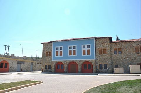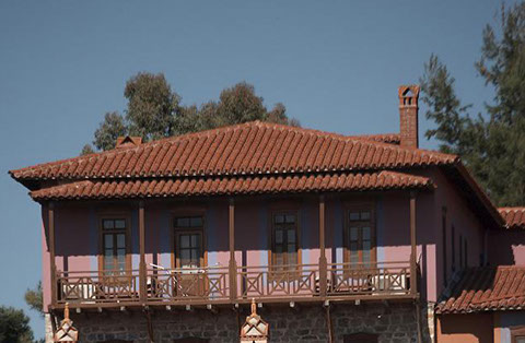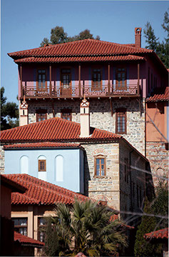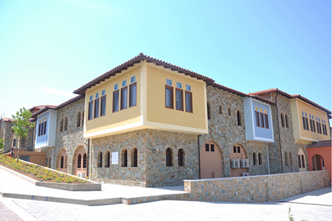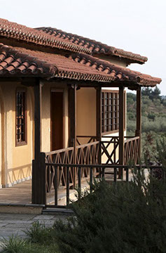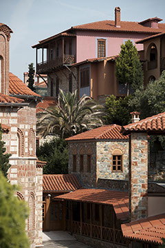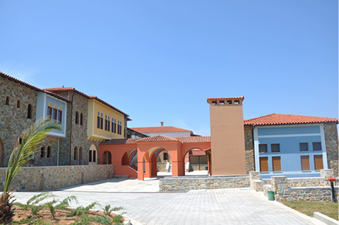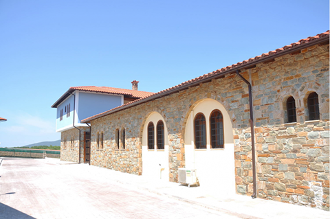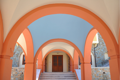 Mise en couleurs des façades du Centre monastique de Panagia Philanthropini Ormylia, Grèce.