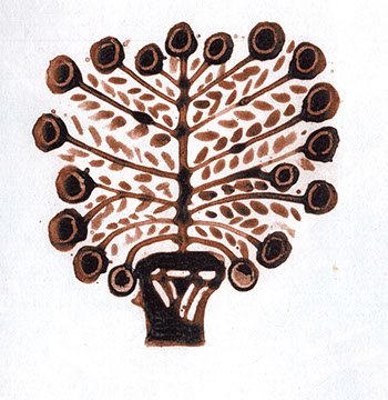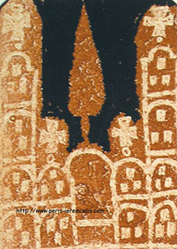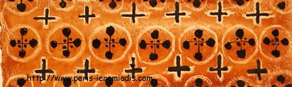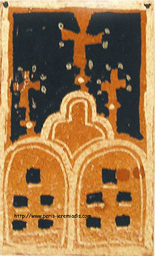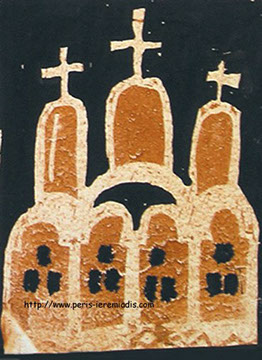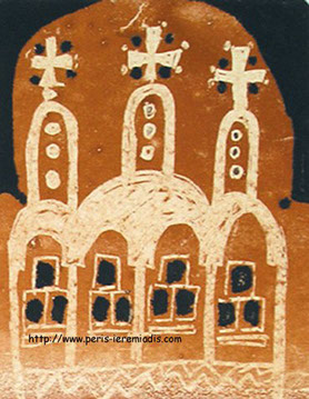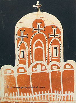 Diese Buchmalereien wurden unter anderem geschaffen zum Zeitpunkt der Illustration des Werkes über das Leben der Heiligen beim Indiktos Verlag, wo sie Seiten und Kapitel anzeigen. Diese Miniaturen wurden in ockerrotem Pigment und schwarzer Tinte auf Papier angefertigt.