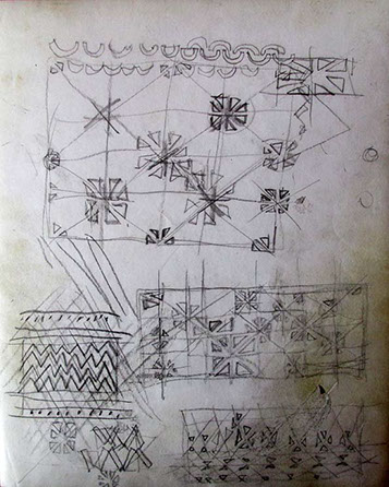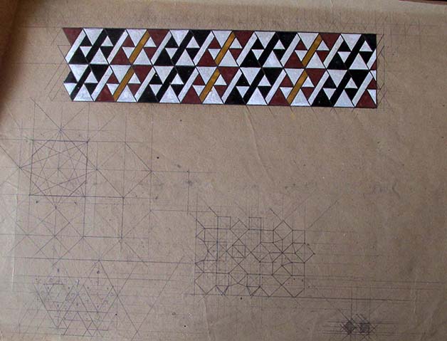 Dekorationsprojekt für Keramikböden (Kos) Skizzen, bemalte oder Collagenmodelle