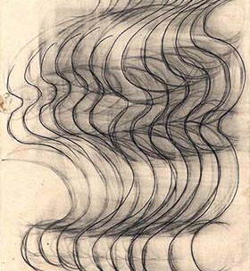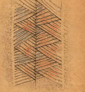 Art textile traditionnel Dans la seconde moitié des années 1970, P.I. observe attentivement de nombreux motifs présents dans les arts textiles traditionnels (costumes, tapisseries, broderies nuptiales, dentelles, etc.), motifs évoquant le filage, le nouage, les entrelacs, etc. Il les étudie au crayon à chaque occasion.