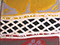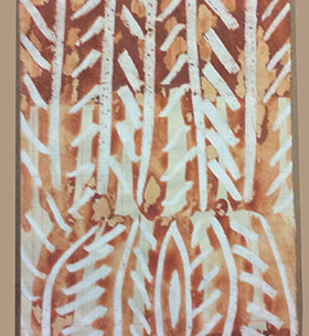 Il lui arrive de se réapproprier un motif de broderie ou de tissage (grecque, ottomane) pour créer une grande tenture (peinture sur toile), une fresque, un grand panneau mural ou un paravent. Il isole un détail et le multiplie, ou bien intègre et met en scène le motif dans un paysage, en modifie les couleurs, l’agrandit, etc. Il isole, reproduit, transforme, fait des associations et donne aux motifs un sens nouveau. Création pour une armoire murale, vers 1990-2000.
